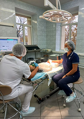 «Огромное значение в нашей работе мы придаем психологическим моментам в общении с нашими маленькими пациентами» - продолжает рассказывать О.В.Тимощенко. «Очень важно на первичном приеме дать понять малышу, что это он сам пришел к врачу, а не его привели родители. Для этого существует множество способов ведения беседы с маленьким пациентом, выработанных в процессе 38-летнего опыта работы. Также, мы никогда не употребляем таких слов как: операция, уколы, перевязки, снятие швов и т.п. Говорим, что нужно будет надуть воздушный шарик, подышать сладким воздухом, погреть животик лампочкой и т.д. Огромным плюсом в нашей работе является принцип «одних рук». Он подразумевает под собой контроль всех этапов лечения одним специалистом. Это первичный осмотр, осмотр перед операцией, при котором ребенок уже знает своего врача и не боится его, оперативное вмешательство, осмотр после операции, выписку домой и осмотр через неделю после операции. И, конечно, очень важно, что все время нахождения в нашем отделении ребенок проводит вместе с родителями. Ведь для малыша главное, чтобы мама была рядом и ничего не болело. Этого мы и добиваемся в своей работе».