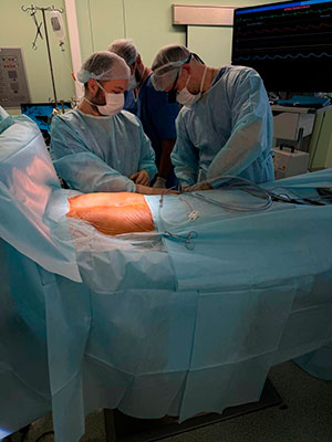 После этого кардиохирургов за операционным столом сменили хирурги торакальные. В Филатовской детской больнице накоплен огромный опыт в области торакопластики, здесь разработана и успешно применяется собственная методика проведения таких операций. «Торакопластика это операция для устранения деформации грудной клетки. Технология коррекции состоит из трех этапов – установка специальной пластины, период ее ношения и удаление пластины. – рассказывает заведующий отделением торакальной хирургии, член-корреспондент РАН Александр Юрьевич Разумовский, - Суть нашего метода заключается в его малой инвазивности, то есть, обычно мы делаем такие операции без разреза. Здесь же разрез уже был произведен, поэтому мы выполнили торакопластику открытым способом, но при этом все равно используя свои наработки, свои собственные запатентованные инструменты и металлоконструкции. Мы делаем такие операции уже 30 лет, все наши пациенты после такого вмешательства ведут совершенно обычный образ жизни.»